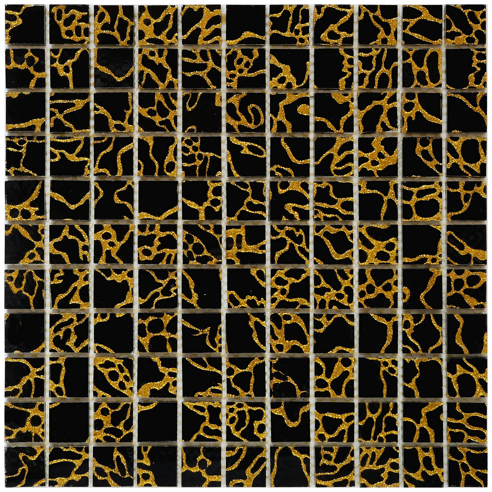 Стеклянная мозаика, серия Special, цвет: золотой, черный, размер чипа (мм): 25x25