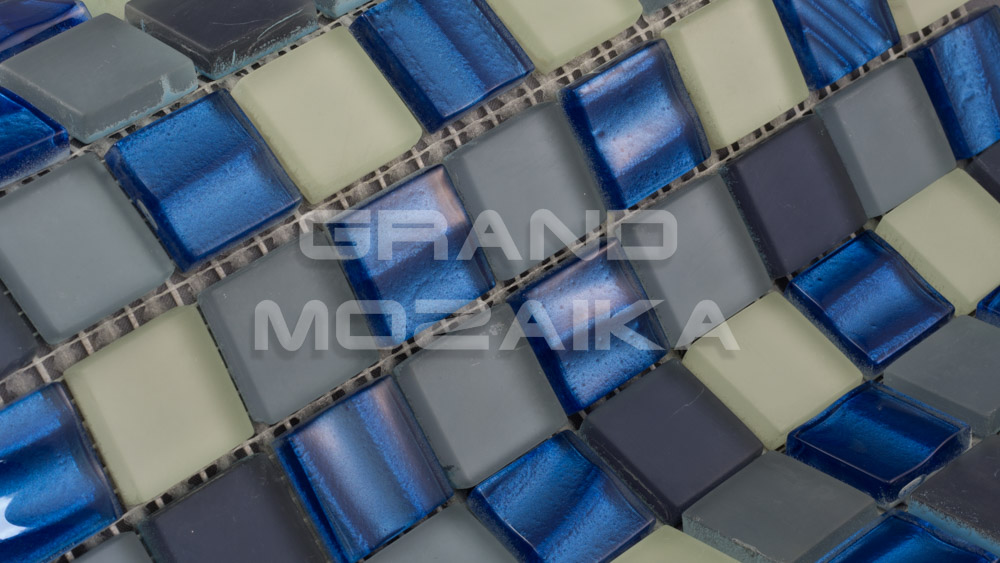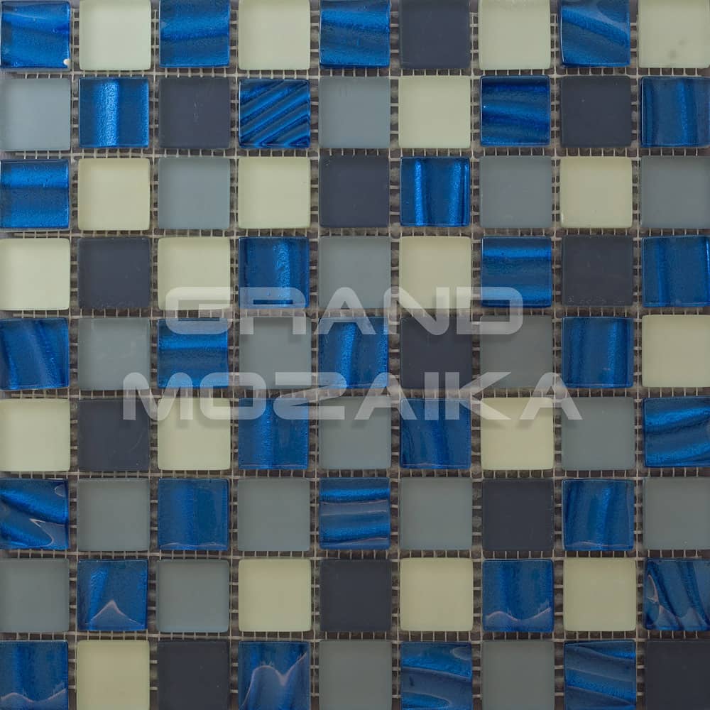 Стеклянная мозаика сине-голубого цвета серии Exclusive состоит из плиток размером 30*30 мм. Сочетание однотонных элементов и кусочков ярко-синего цвета с размытым рисунком делает полотно неповторимым. Идеально подходит для отделки ванных комнат и других помещений с влажной средой. Поверхность глянцевая, размер сетки 298х298 мм. Толщина мозаики - 8 мм.
