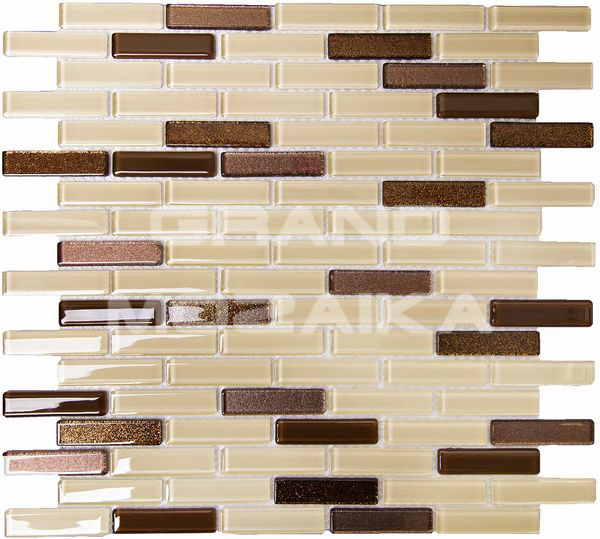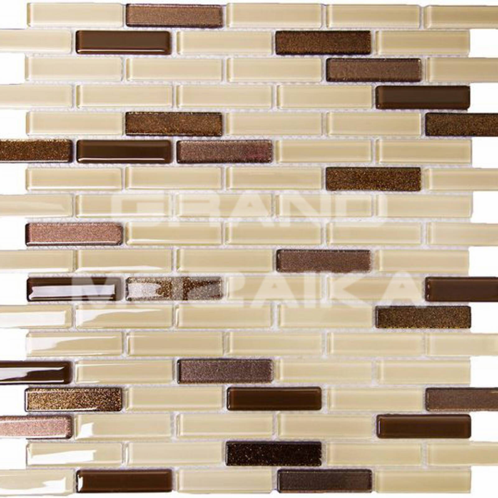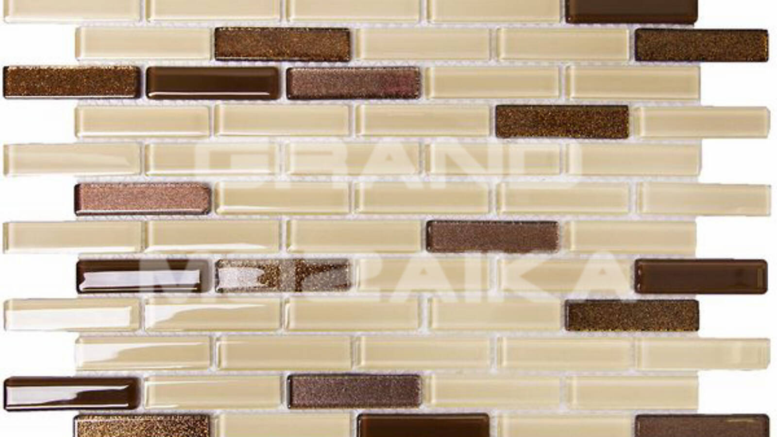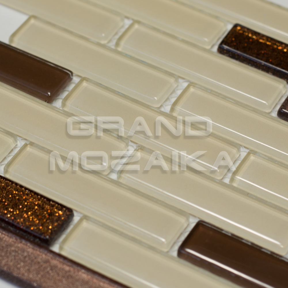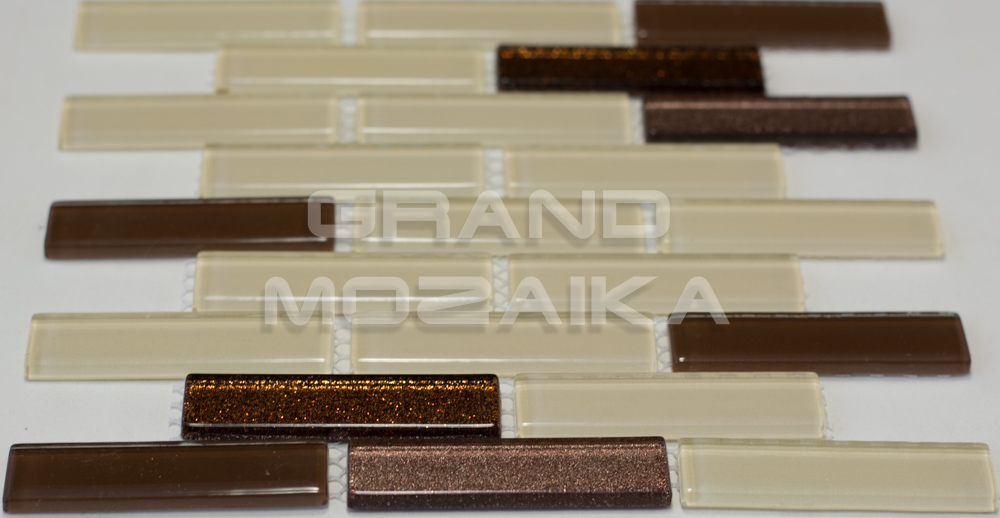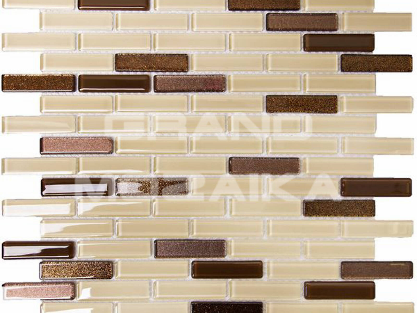 Стеклянная мозаика, серия Krista, цвет: бежевый, коричневый, размер чипа (мм): 15x62