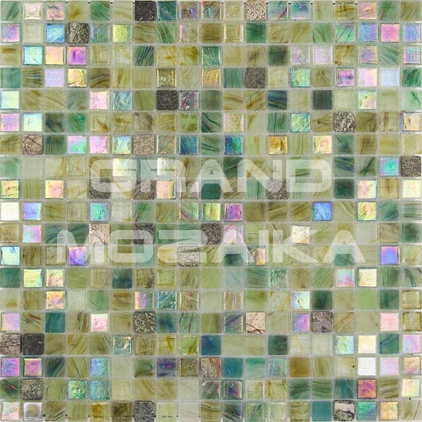 Мозаика серии Amber выполнена из маленьких кусочков размером 15х15 мм. Элементы зеленого цвета сделаны из стекла с размытым рисунком. Полотно 327х327 удобно в монтаже и не требует особых навыков.