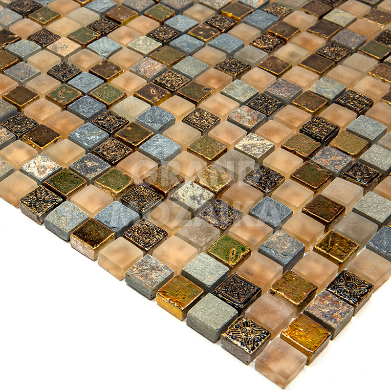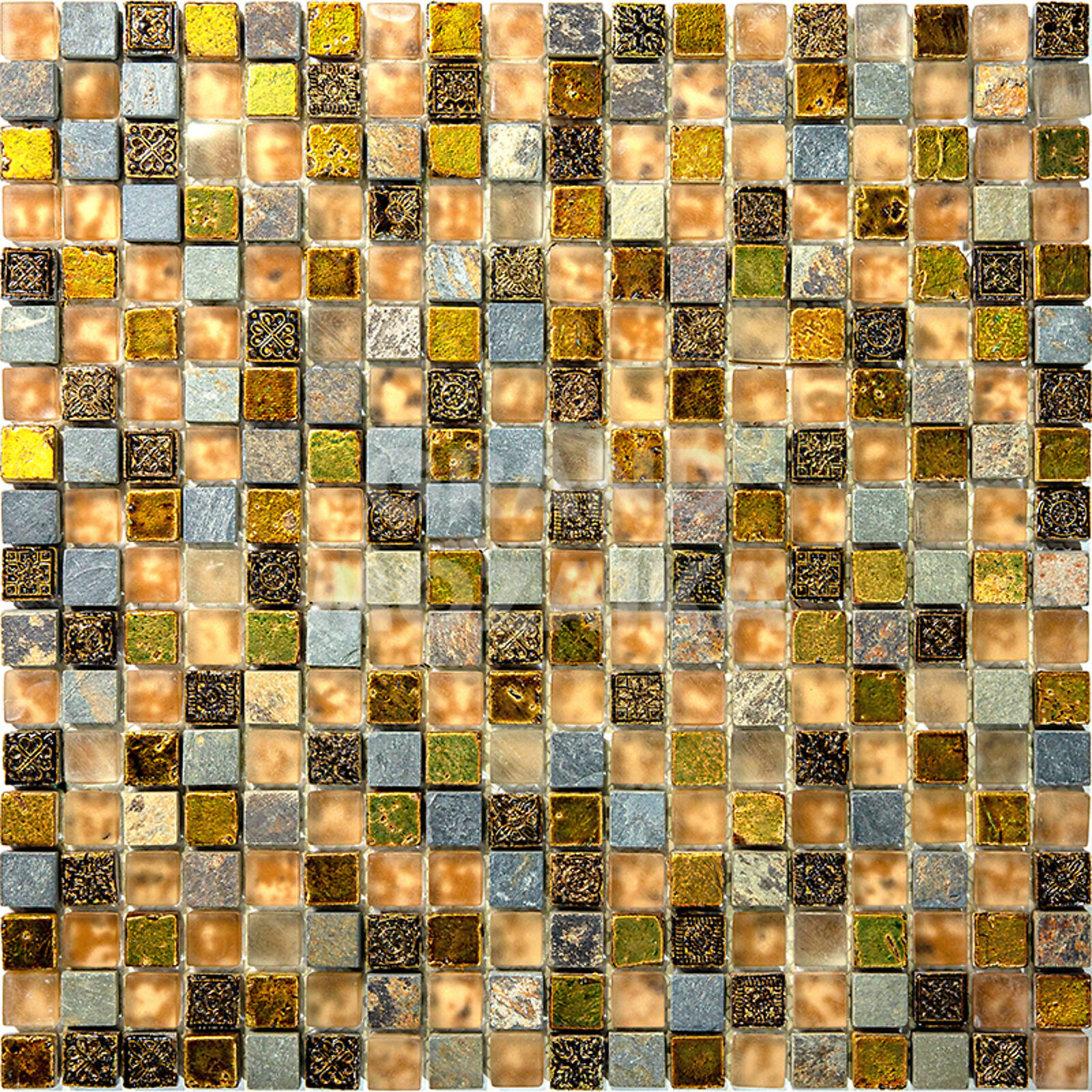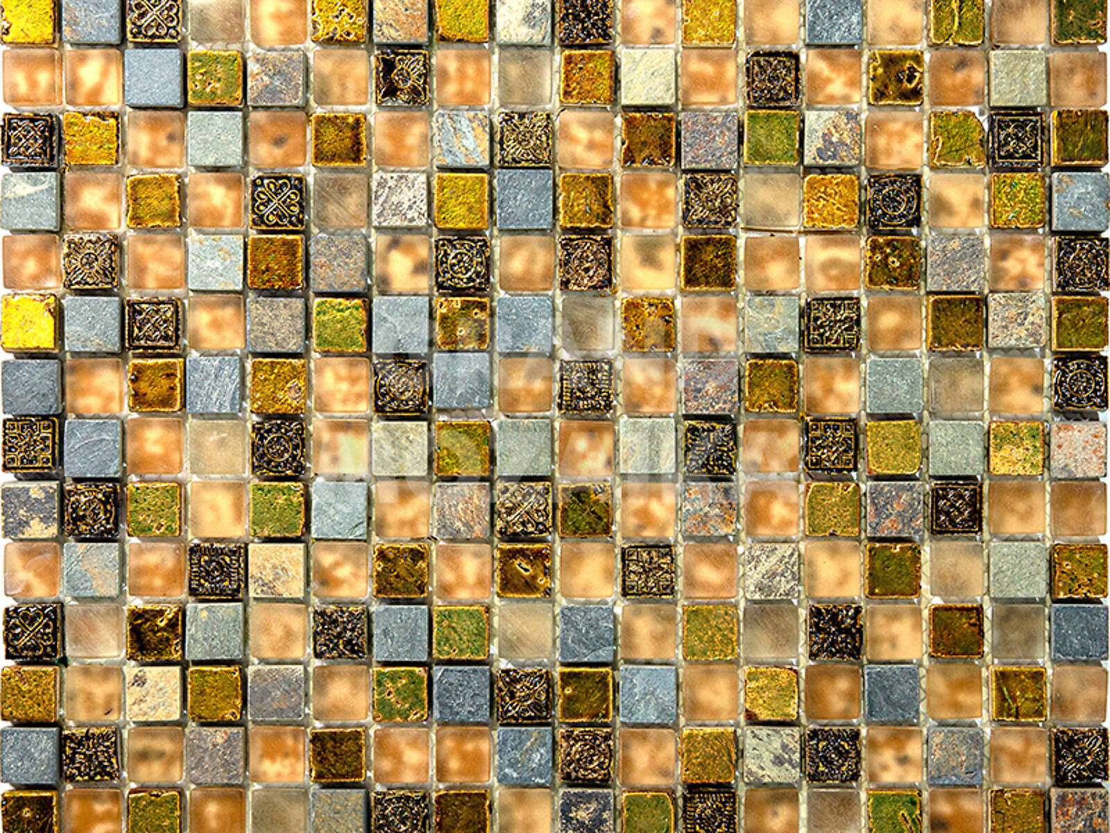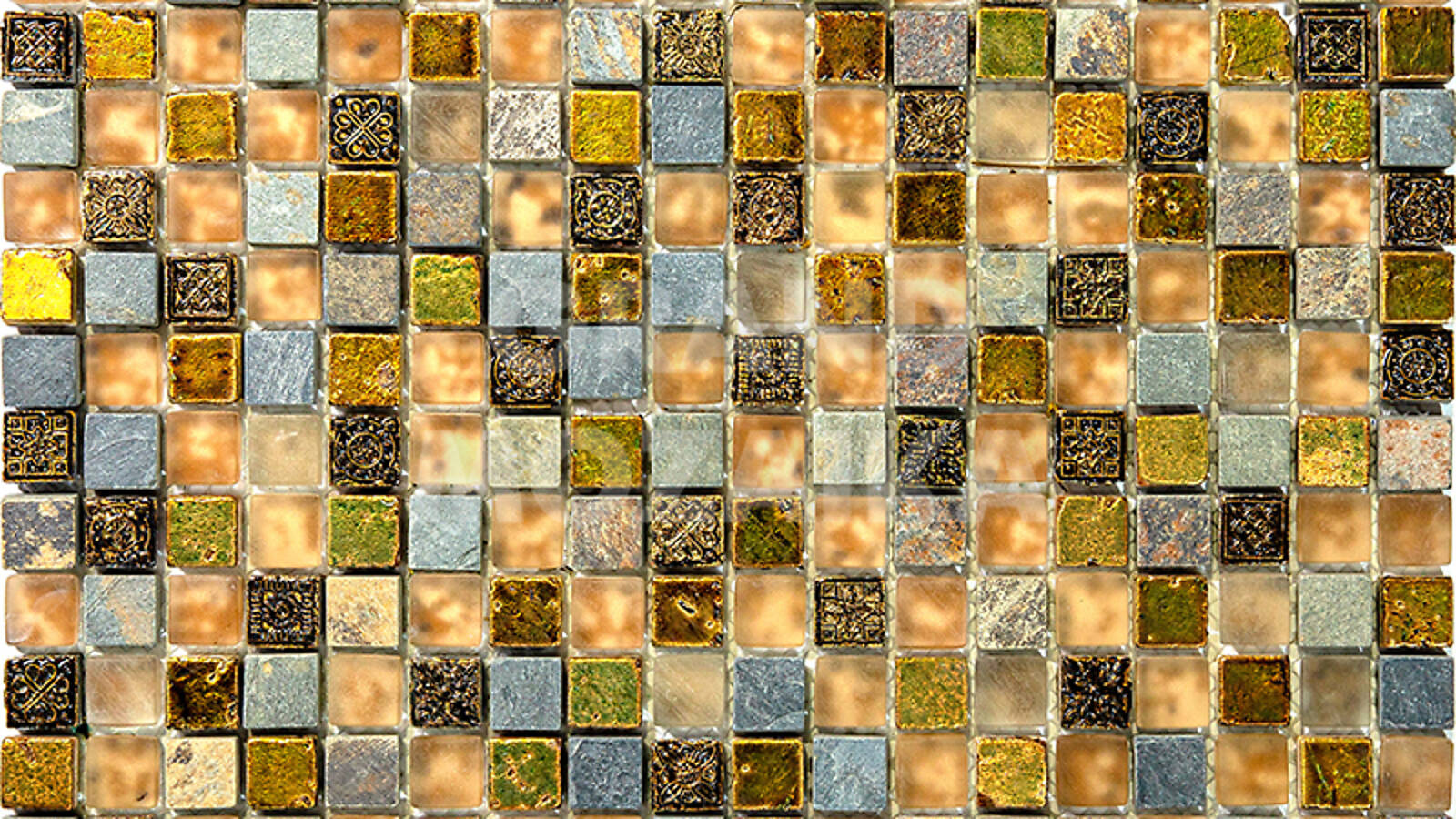 Элитная мозаика Luxury серии Inka состоит из кусочков размером 15х15 мм. Полотно выполнено из мозаик приглушенного темно-серого и золотого цвета. Вкрапление мозаик с незамысловатым орнаментом делает полотно оригинальным. Интерьер дополненный такой мозаикой окунет вас в анналы древности.