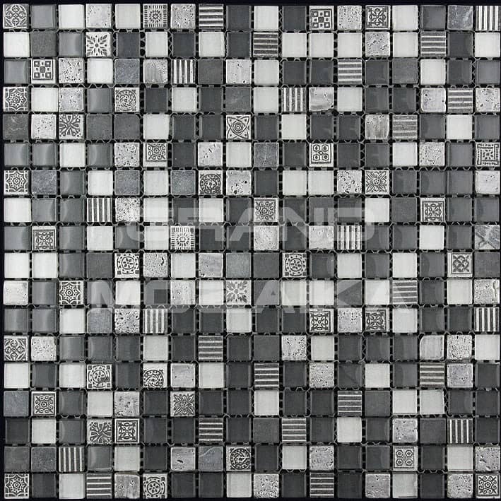 Элитная мозаика Luxury серии Inka состоит из кусочков размером 15х15 мм. Полотно выполнено из мозаик приглушенного темно-серого и белого цвета. Вкрапление мозаик с незамысловатым орнаментом делает полотно оригинальным. Интерьер дополненный такой мозаикой окунет вас в анналы древности.