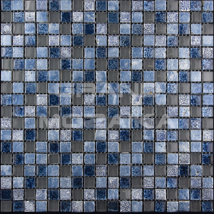 Элитная мозаика Luxury серии Inka состоит из кусочков размером 15х15 мм. Полотно выполнено из мозаик приглушенного темно-серого и голубого цвета. Вкрапление мозаик с незамысловатым орнаментом делает полотно оригинальным. Интерьер дополненный такой мозаикой окунет вас в анналы древности.