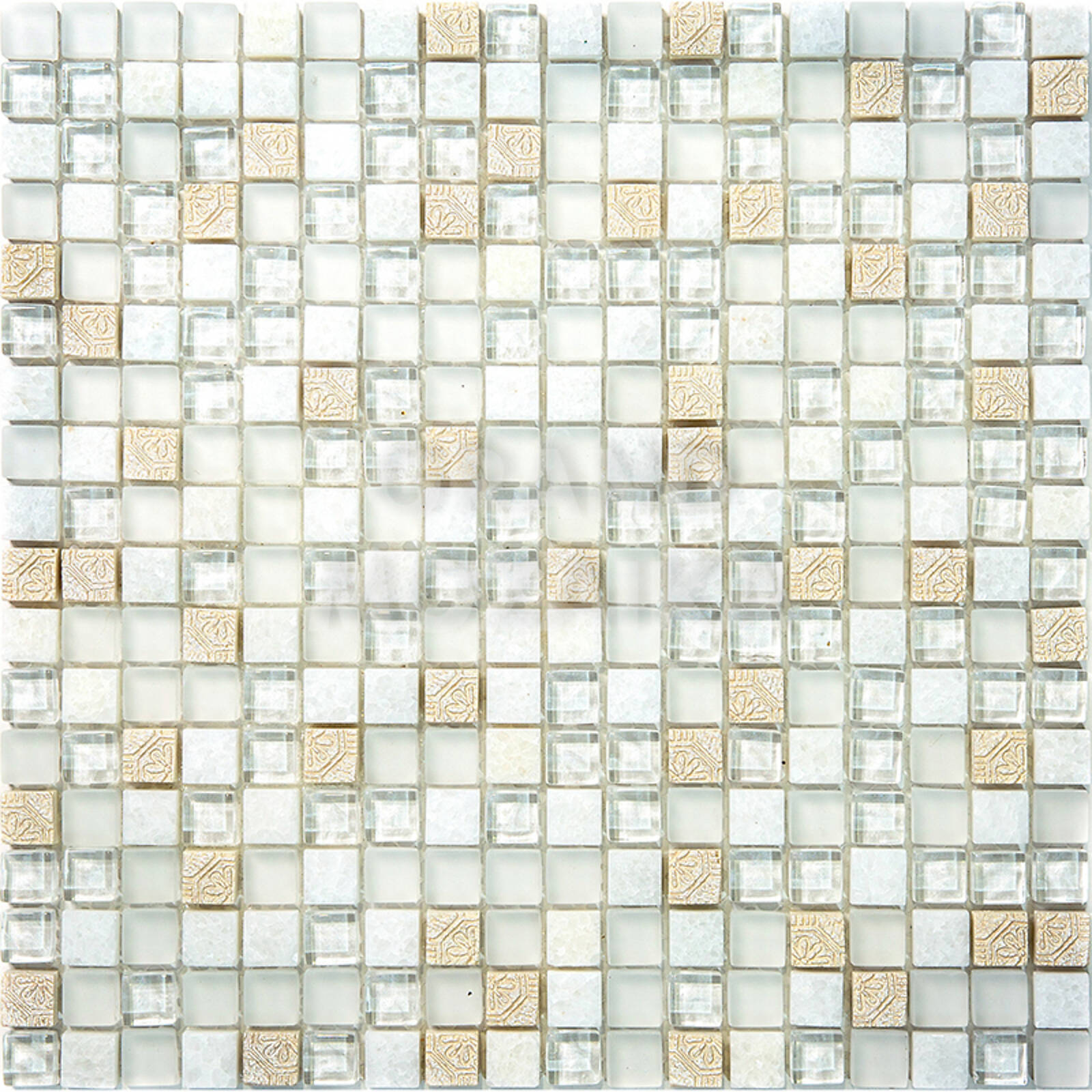 Элитная мозаика Luxury серии Inka состоит из кусочков размером 15х15 мм. Полотно выполнено из мозаик белого и серебряного цветов. Вкрапление мозаик с незамысловатым орнаментом делает полотно оригинальным. Интерьер дополненный такой мозаикой окунет вас в анналы древности.