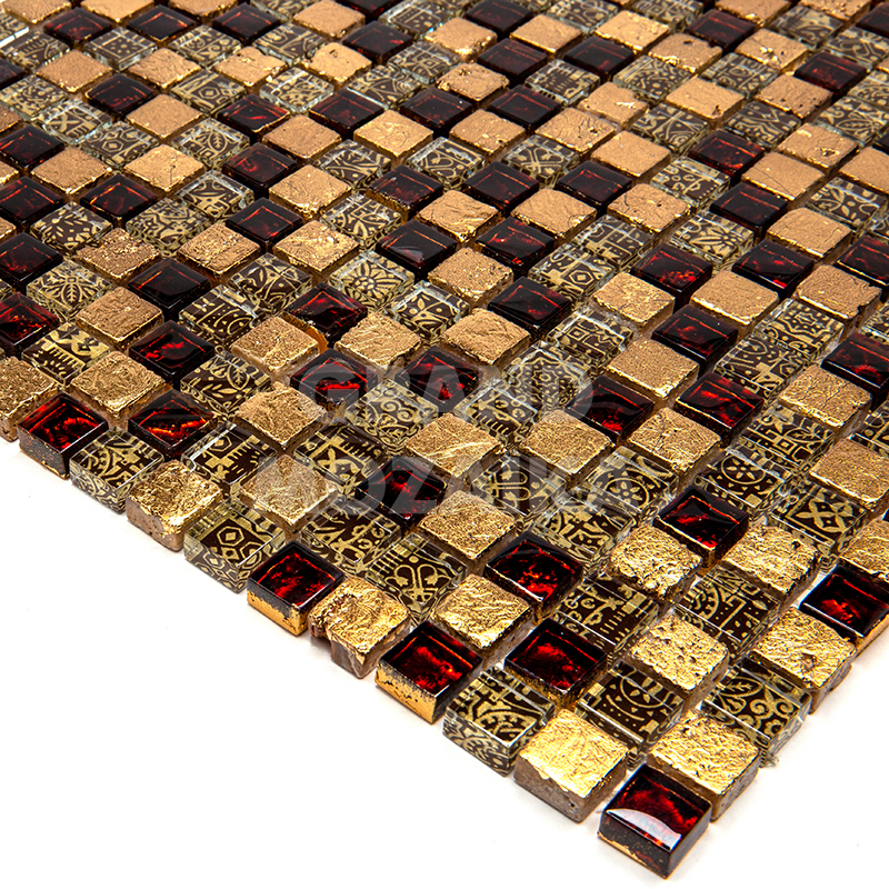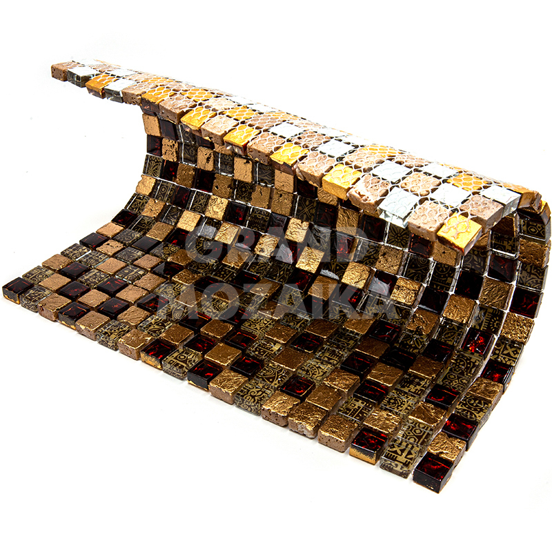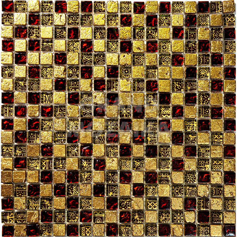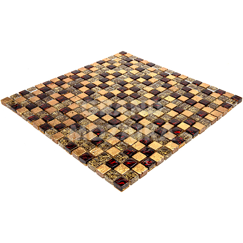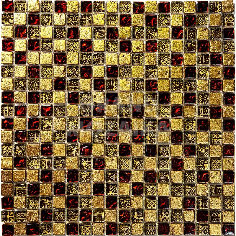 Элитная мозаика Luxury серии Inka состоит из кусочков размером 15х15 мм. Полотно выполнено из мозаик приглушенного бордового и золотого цвета. Вкрапление мозаик с незамысловатым орнаментом делает полотно оригинальным. Интерьер дополненный такой мозаикой окунет вас в анналы древности.