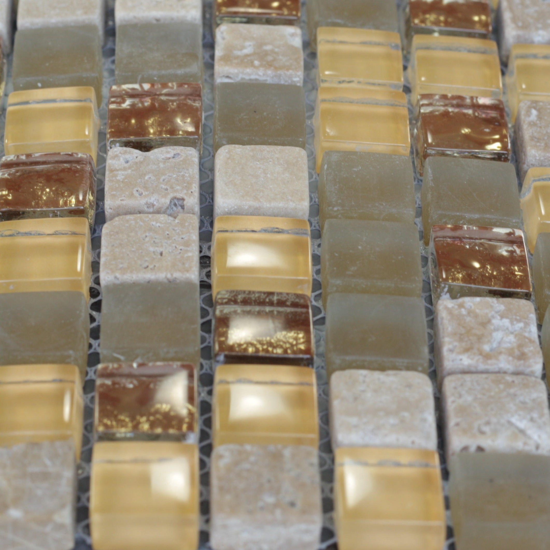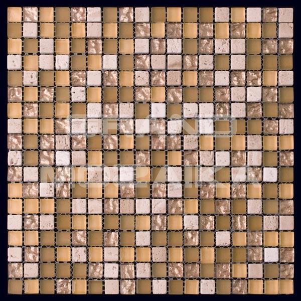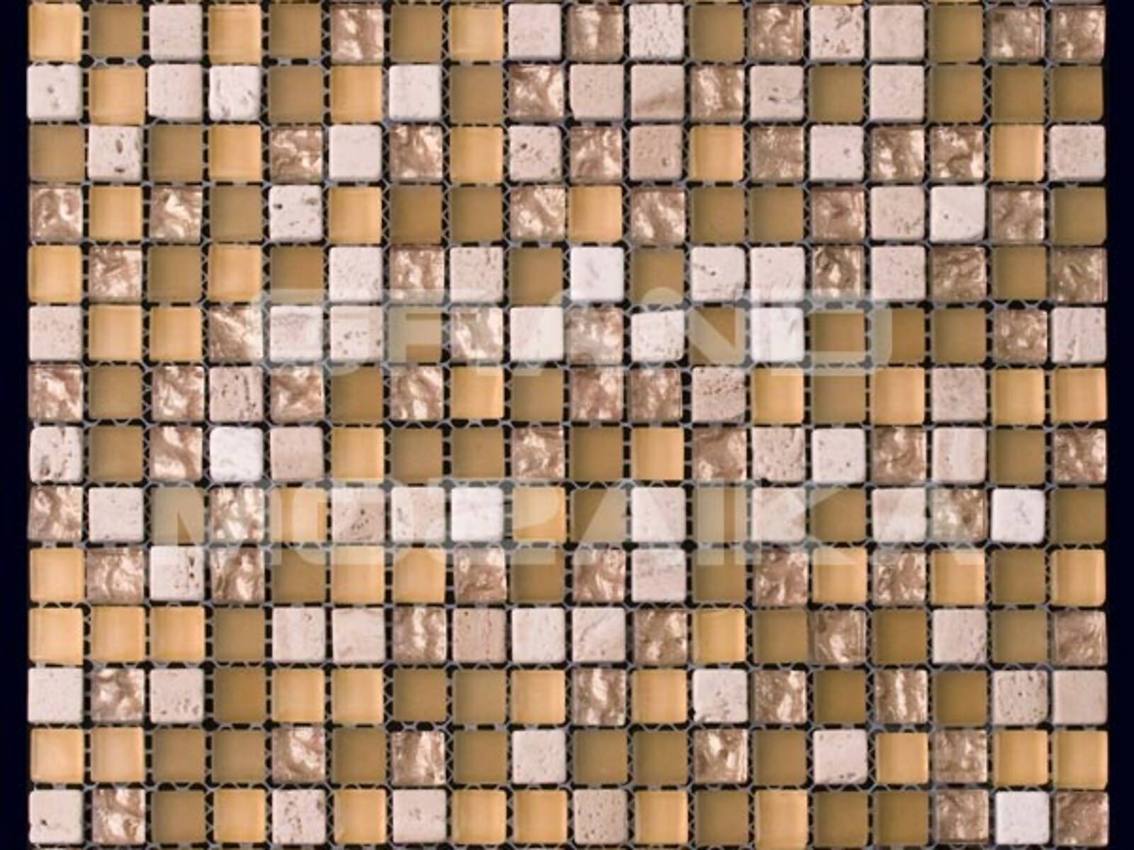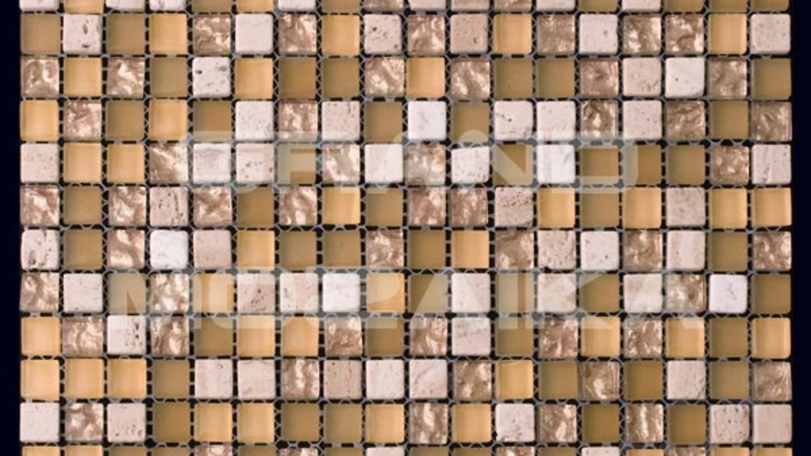 Микс мозаика серии Mix Glass&Stone состоит из маленьких кусочков размером 15х15 мм. На полотне размером 300х300 мм хаотически сочетаются стеклянные и мраморные мозаики бежевого оттенка. Такая мозаика послужит оригинальным дополнение любого интерьера.