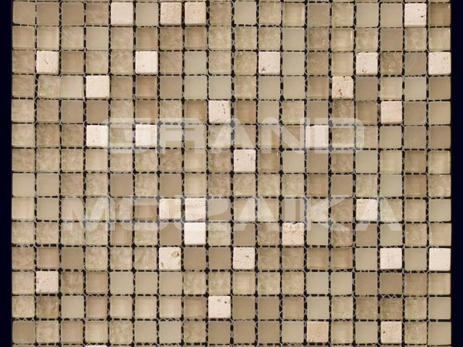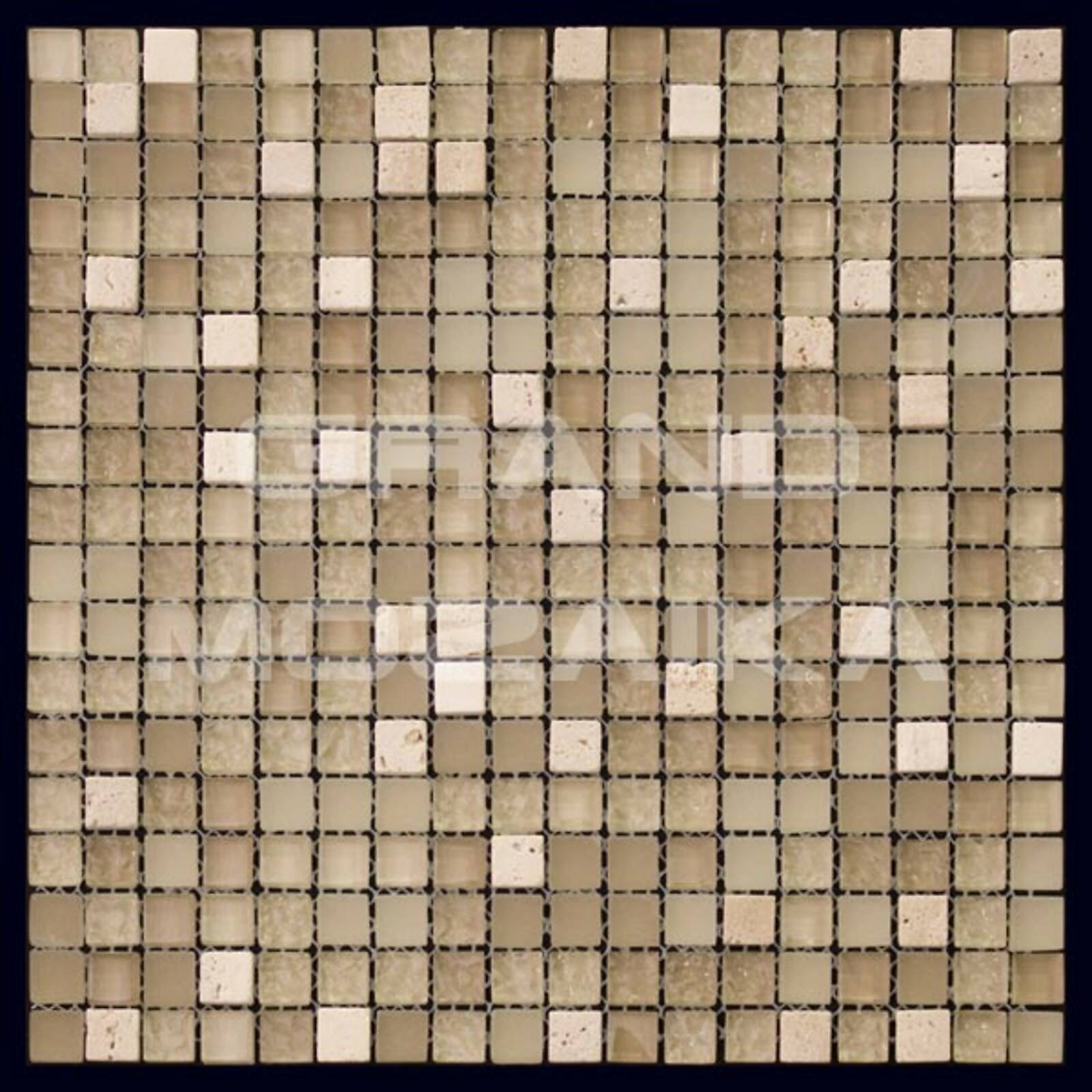 Микс мозаика серии Pastel состоит из маленьких кусочков размером 15х15 мм. Полотно размером 300х300 мм состоит из стеклянных и каменных мозаик различных оттенков бежевого цвета. Такая мозаика послужит оригинальным дополнение любого интерьера.