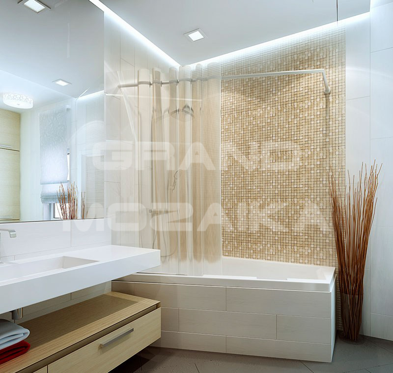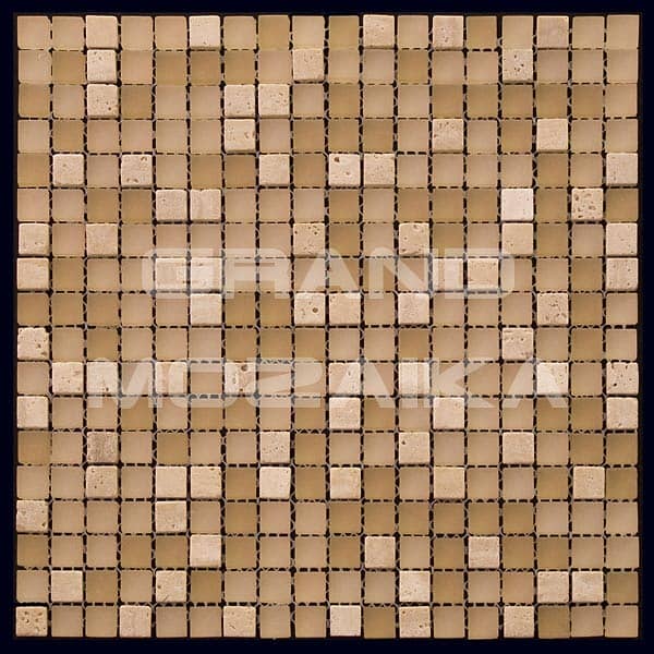 Микс мозаика серии Mix Glass&Stone состоит из маленьких кусочков размером 15х15 мм. Полотно размером 300х300 мм состоит из стеклянных и каменных мозаик различных оттенков бежевого цвета. Такая мозаика послужит оригинальным дополнение любого интерьера.