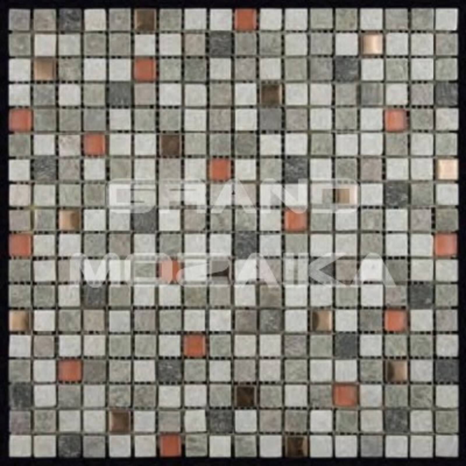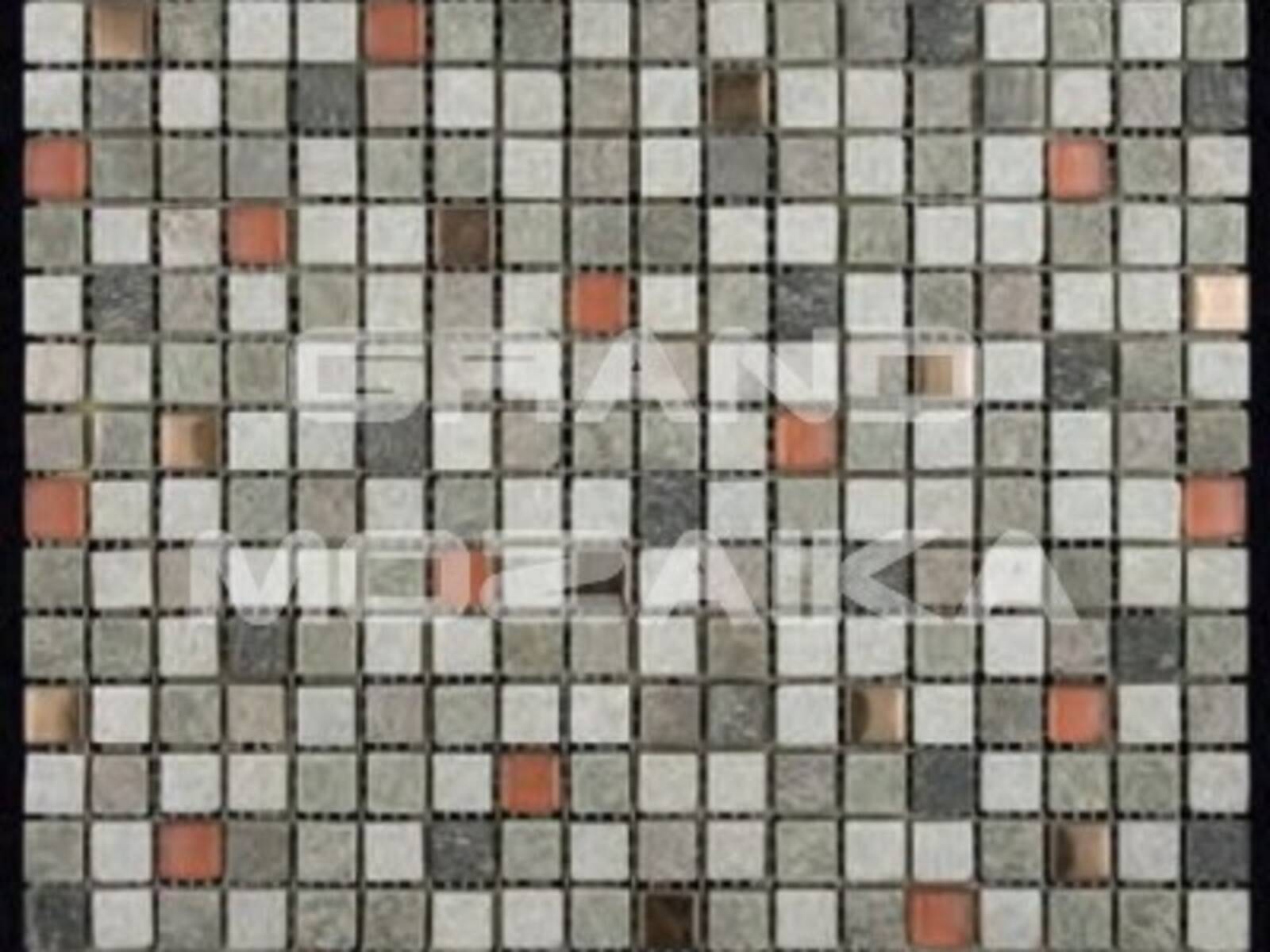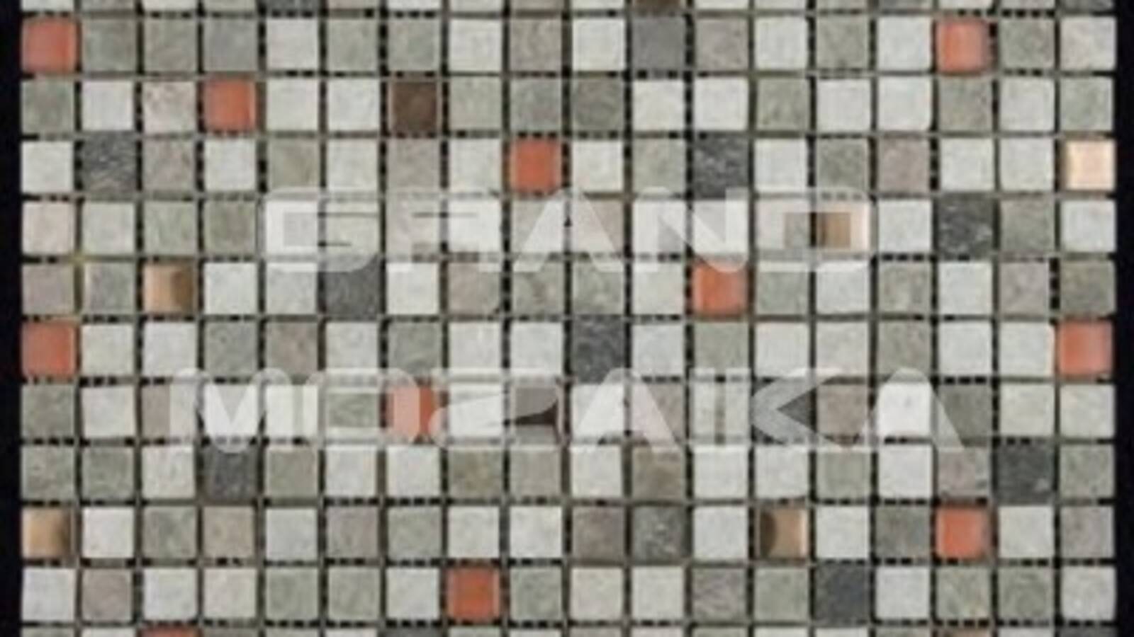 Микс мозаика серии Mix Stone&Glass&Metall состоит из маленьких кусочков размером 15х15 мм. На полотне размером 300х300 мм хаотически сочетаются стеклянные, каменная и металлические мозаики серого оттенка. Такая мозаика послужит оригинальным дополнение любого интерьера.