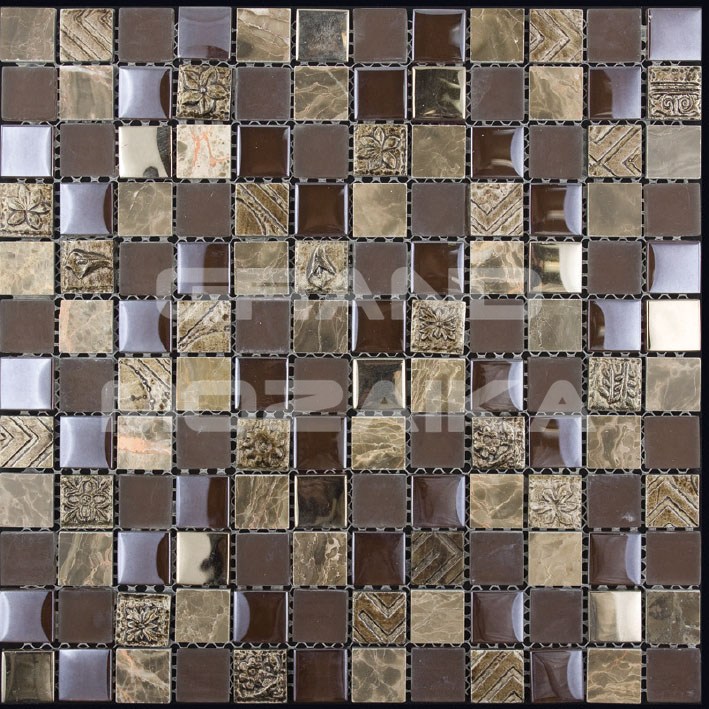 Элитная мозаика Luxury серии Inka состоит из кусочков размером 23х23 мм. Полотно выполнено из мозаик всех оттенков коричневого и золотого цвета. Вкрапление мозаик с незамысловатым орнаментом делает полотно оригинальным. Интерьер дополненный такой мозаикой окунет вас в анналы древности.