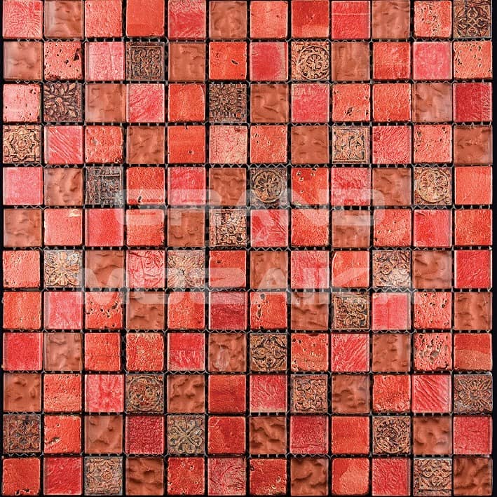 Элитная мозаика Luxury серии Inka состоит из кусочков размером 23х23 мм. Полотно выполнено из мозаик темно-красного и коричневого цвета. Вкрапление мозаик с незамысловатым орнаментом делает полотно оригинальным. Интерьер дополненный такой мозаикой окунет вас в анналы древности.