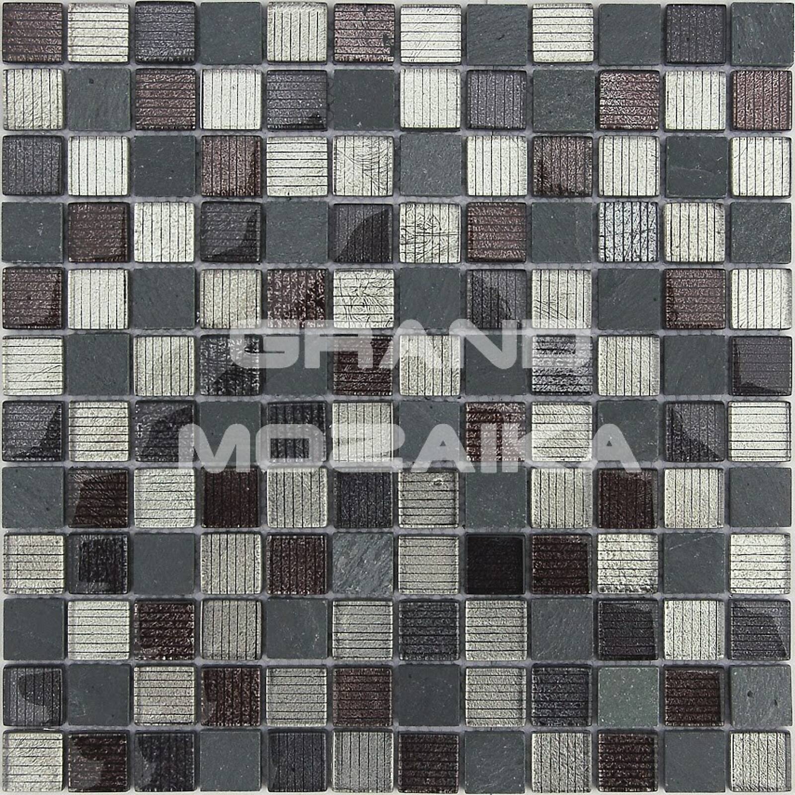 Мозаика из стекла и камня, серия Naturelle, цвет: серый, бронзовый, серебряный, размер чипа (мм): 23x23