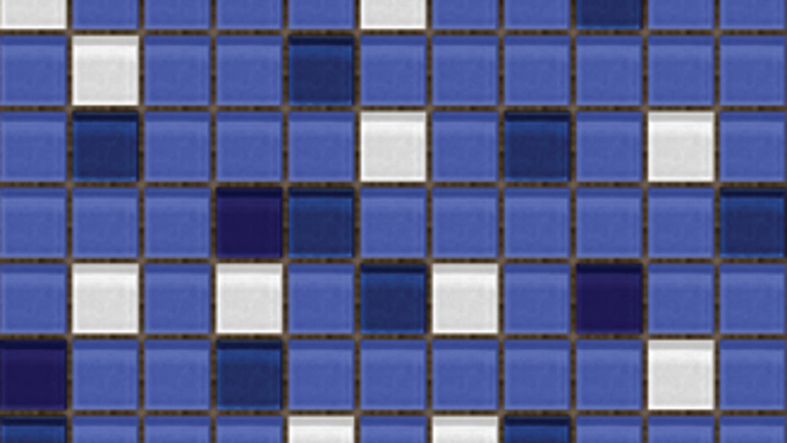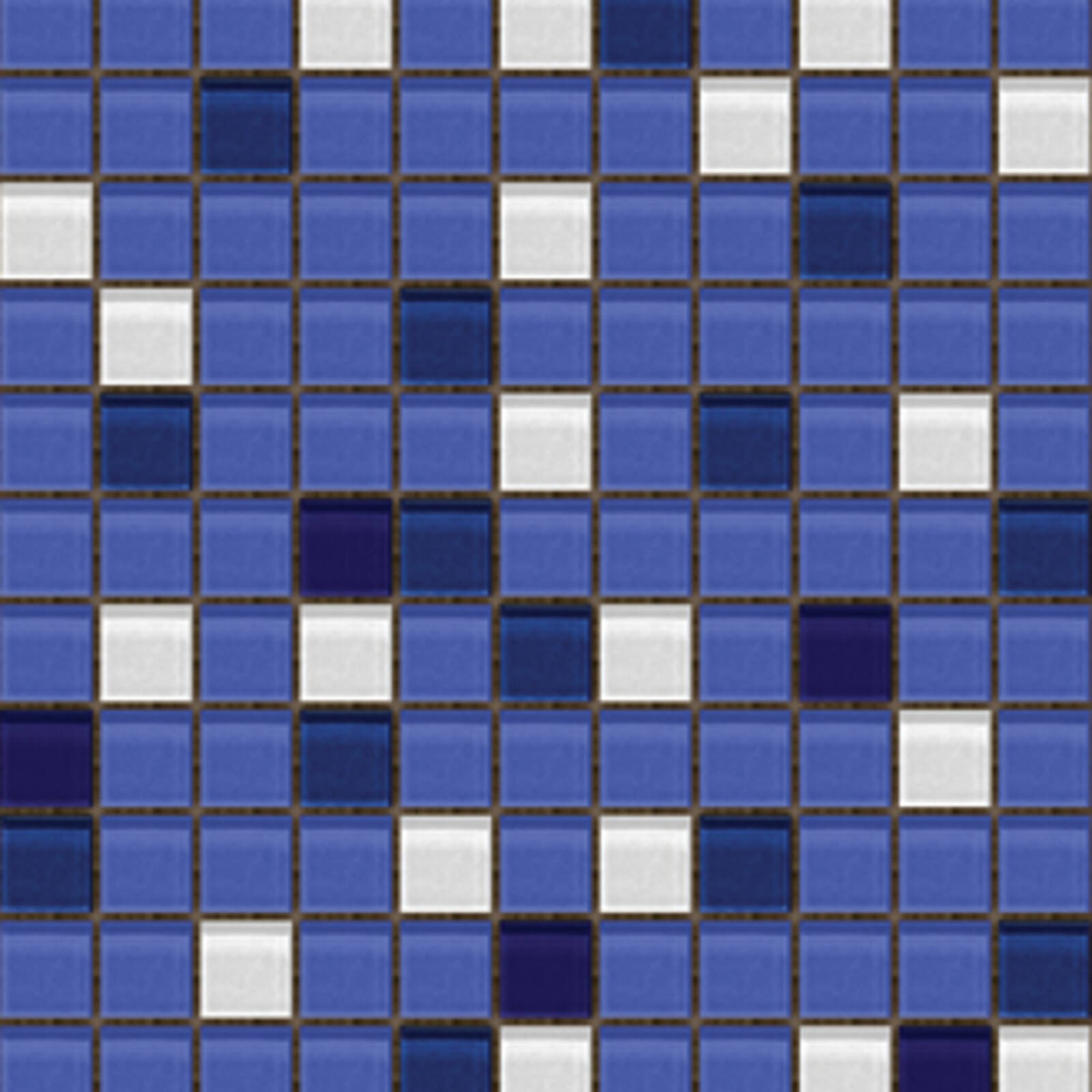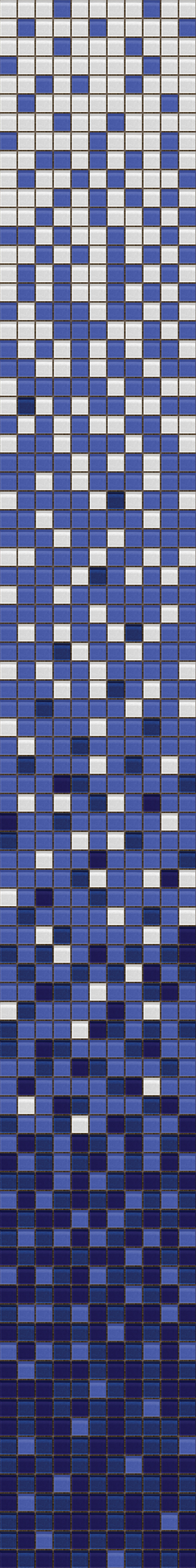 Стеклянная мозаика серии Растяжки. Состоит из мелких (23х23 мм) кусочков. Элементы голубого цвета плавно переходящего от светлого к более темному. Идеально подходит для отделки ванных комнат и других помещений. Поверхность глянцевая, размер сетки 300х300 мм. Толщина мозаики - 6 мм.