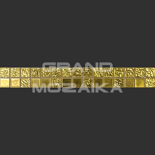 Матричный бордюр выполнен из глянцевых кусочков размером 20х20 мм. Он представляет собой золотую полосочку толщиной 42 мм. Такой бордюр будет прекрасно смотреться в дизайне бассейна в сочетаниями со стеклянными мозаиками из других серий.