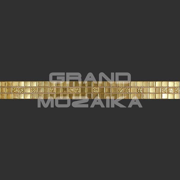 Матричный бордюр выполнен из глянцевых кусочков размером 10х10 мм. Бордюр сделан из мозаик золотого и серебряного цвета и прекрасно подойдет к мозаичным панно серии Golden Mean.