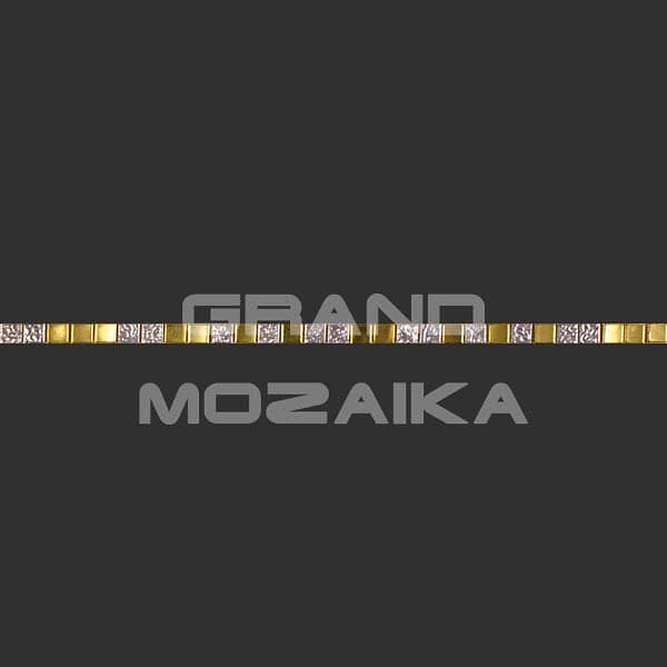 Матричный бордюр выполнен из глянцевых кусочков размером 10х10 мм. Бордюр сделан из мозаик золотого и серебряного цвета и прекрасно подойдет к мозаичным панно серии Golden Mean.