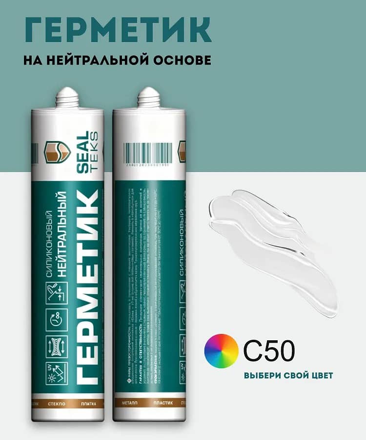 Герметик санитарный на нейтральной основе Sealteks. Чисто, комфортно, технологично. Усиленная формула с противогрибковым барьером. УФ-стойкий, эластичный, рекомендуется для применения и герметизации стыковых соединений во влажных и сухих помещениях.