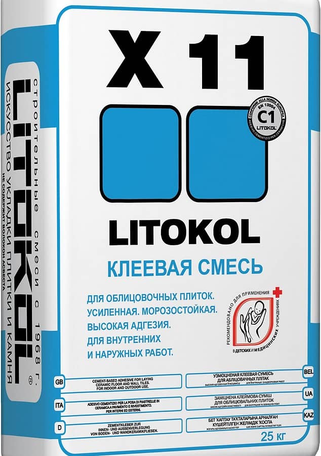 Клей LITOKOL X11 - водо-, морозостойкий. Экологически безопасен, не содержит волокон асбеста.