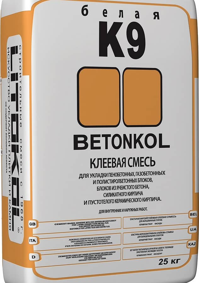 BETONKOL K9 предназначен для возведения внутренних и внешних стен из пенобетонных, газобетонных и полистиролбетонных блоков, блоков из ячеистого бетона, силикатного кирпича и пустотелого керамического кирпича. Подходит также для последующей шпатлёвки и выравнивания стен из данного вида блоков.