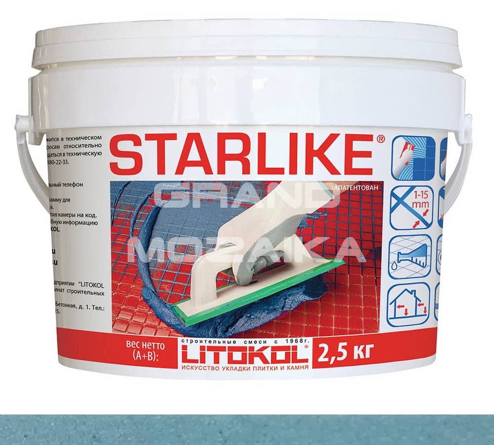 LITOCHROM STARLIKE / ЛИТОХРОМ СТАРЛАЙК применяется для укладки и кислотостойкой затирки облицовки из керамической плитки и мозаики с шириной шва от 1 до 15 мм. Для выполнения внутренней и наружной облицовки:
