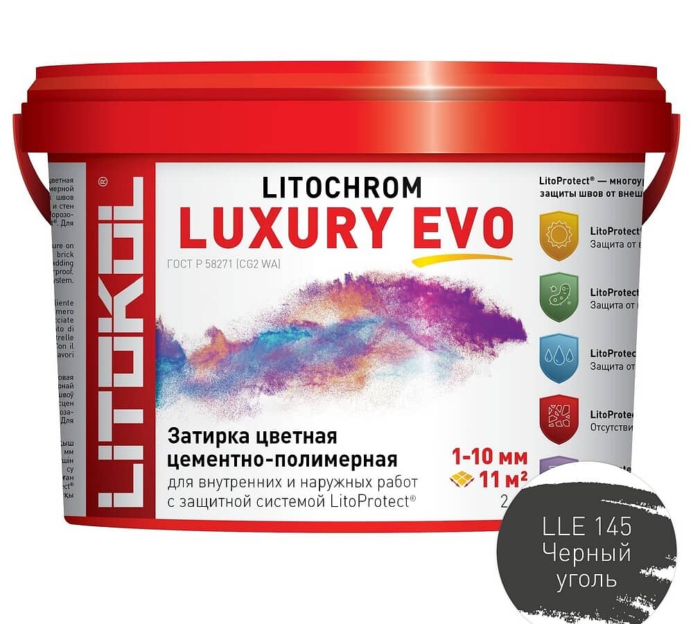 LITOCHROM LUXURY EVO - эластичная водоотталкивающая цементно-полимерная затирка с защитной системой LitoProtect для заполнения межплиточных швов шириной 1–10 мм.