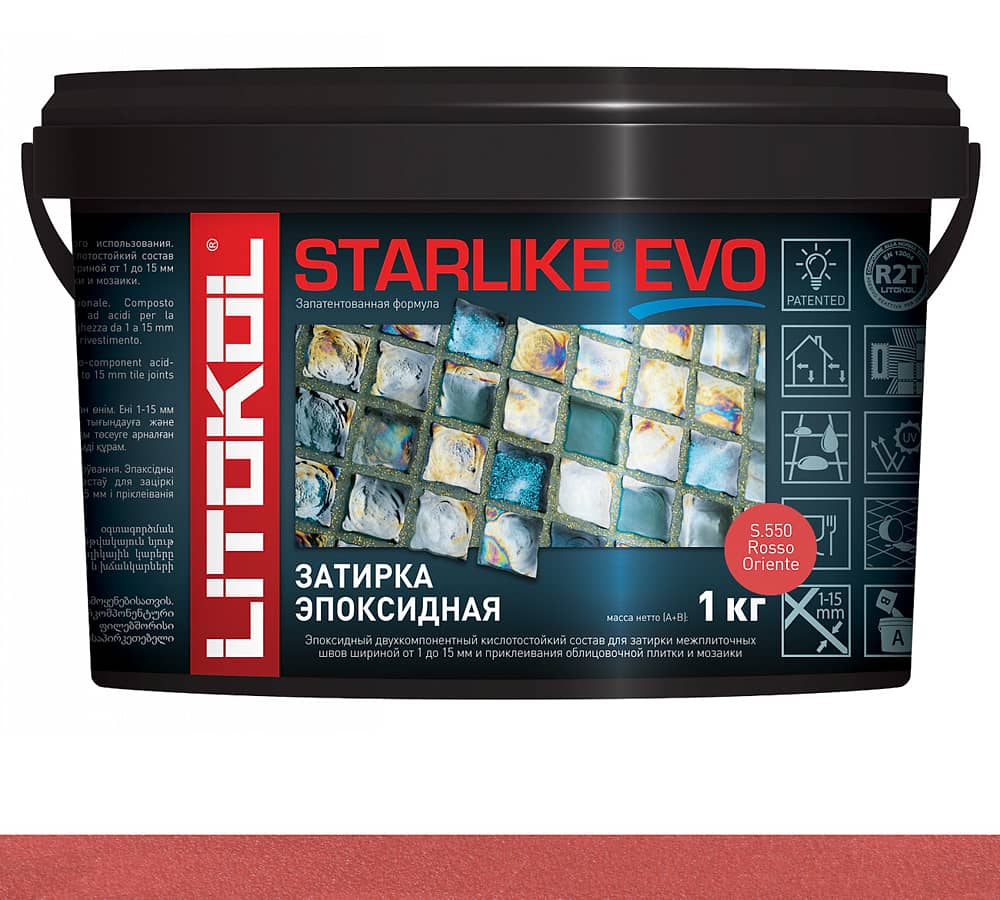 STARLIKE EVO двухкомпонентныи эпоксидныи кислотостоикии, щелочестоикии состав для затирки межплиточных швов с ширинои шва от 1 до 15 мм и использования в качестве клея для всех видов облицовочнои плитки и мозаики.
